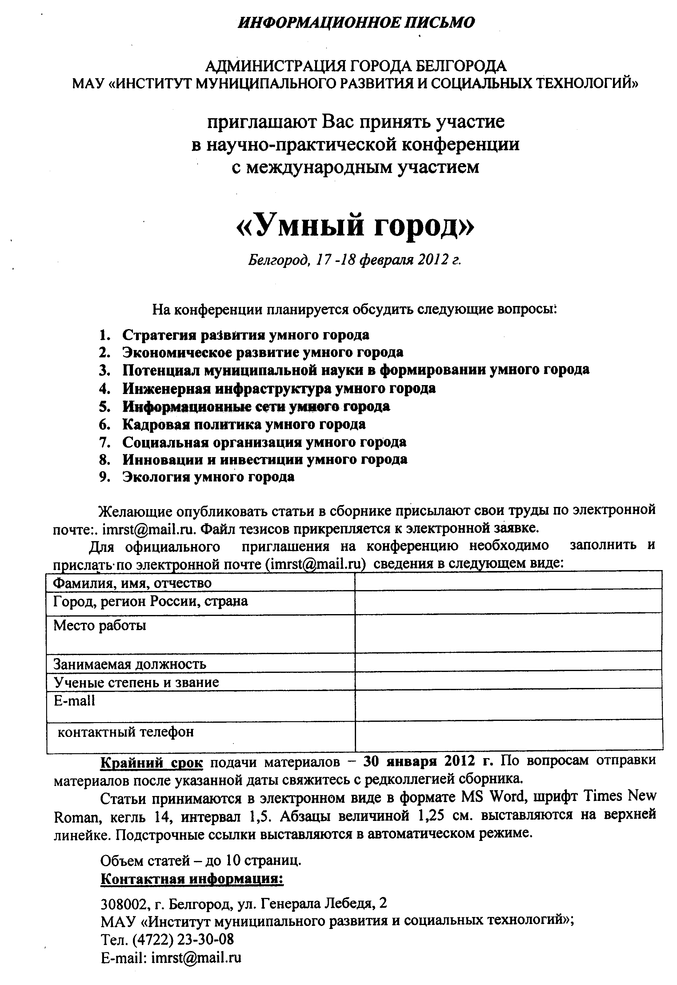 - Научно-практическая конференция с международным участием «Умный город» Страница 1 Страница 2 Страница 3